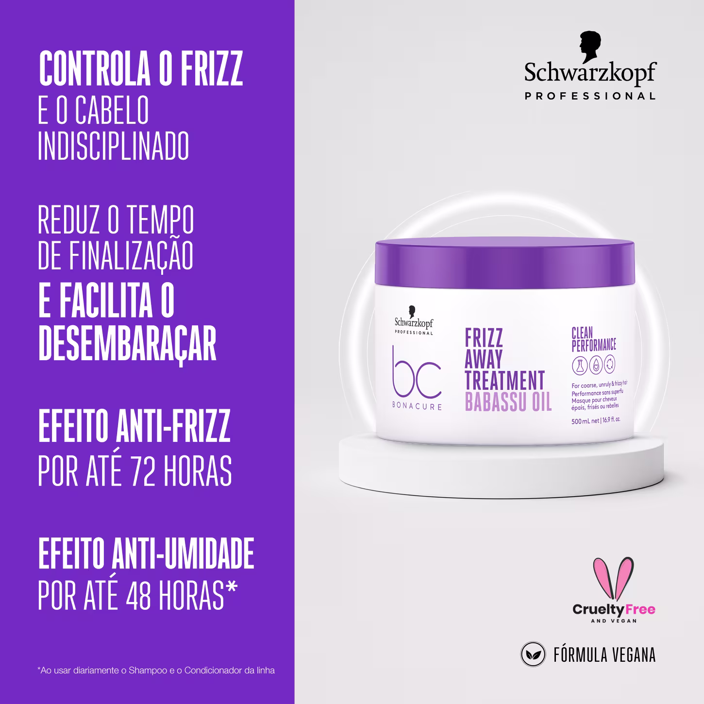 Máscara para cabelos com frizz. Schwarzkopf Professional BC Bonacure Clean Performance Frizz Away nutre intensivamente, proporcionando alinhamento aos fios.