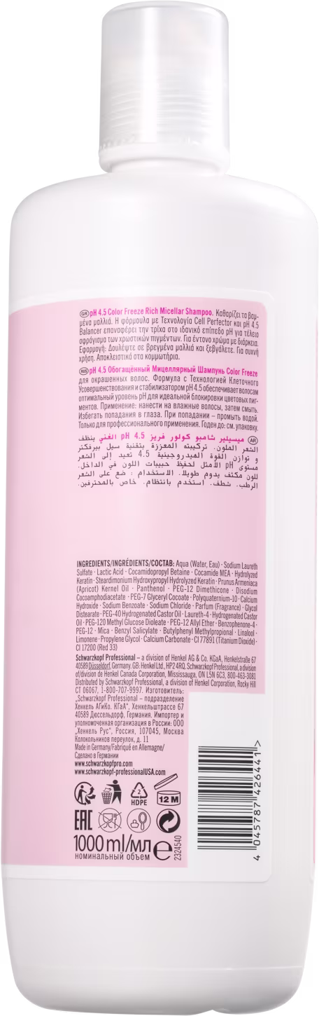 Compre Shampoo Schwarzkopf BC Bonacure pH 4.5 Color Freeze Micellar Rich, para cabelos coloridos. Melhor preço e entrega rápida para Schwarzkopf. Ver mais ❯