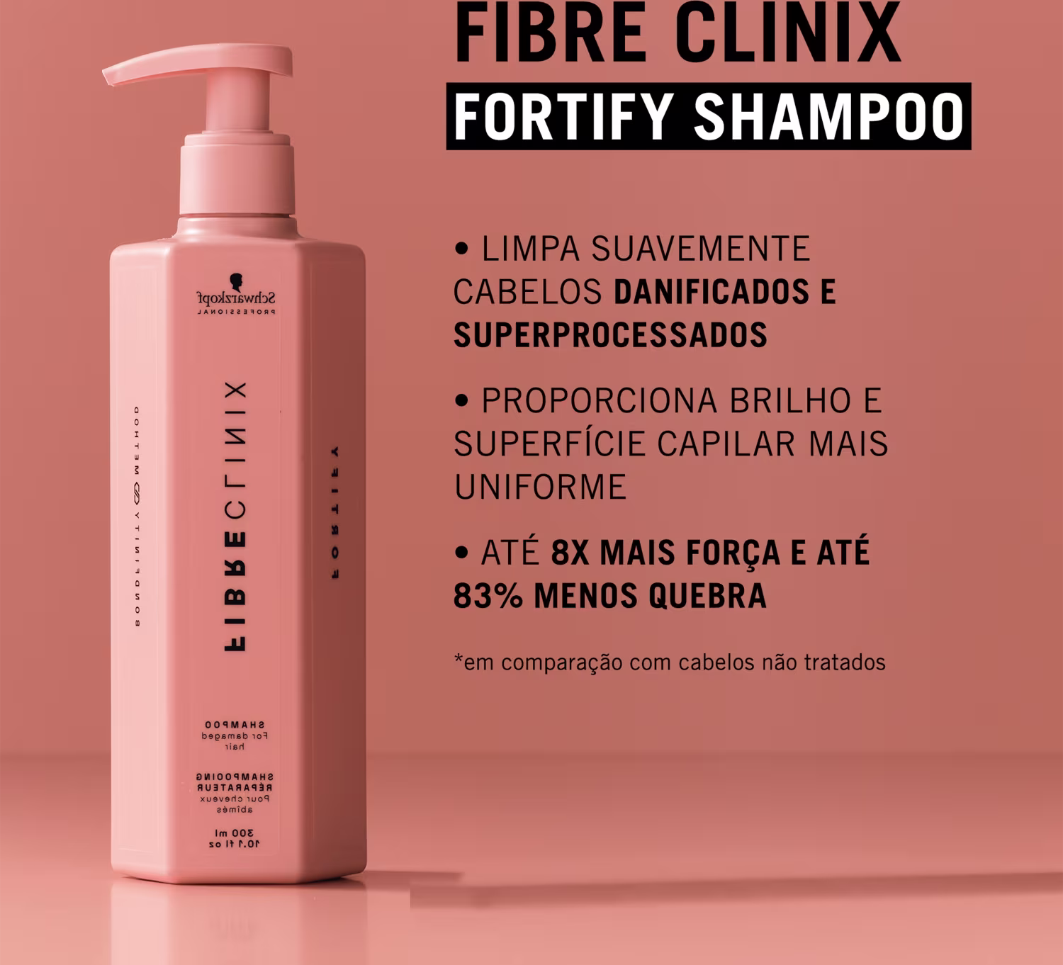 Shampoo para cabelos danificados e quebradiços. Schwarzkopf Professional Fibre Clinix Fortify limpa profundamente e nutre o cabelo enfraquecido.