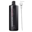 Shampoo de tamanho profissional com válvula pump para cabelos danificados. Sebastian Professional Penetraitt reconstrói e limpa os fios.