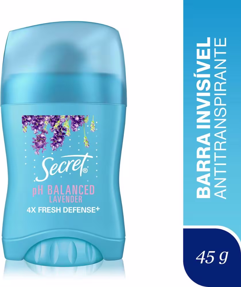 Não sei o CEPAntitranspirante em barra. Secret PH Balanceado Lavander conta com aplicação seca, proporciona proteção contra o suor e mau cheiro enquanto hidrata e protege.