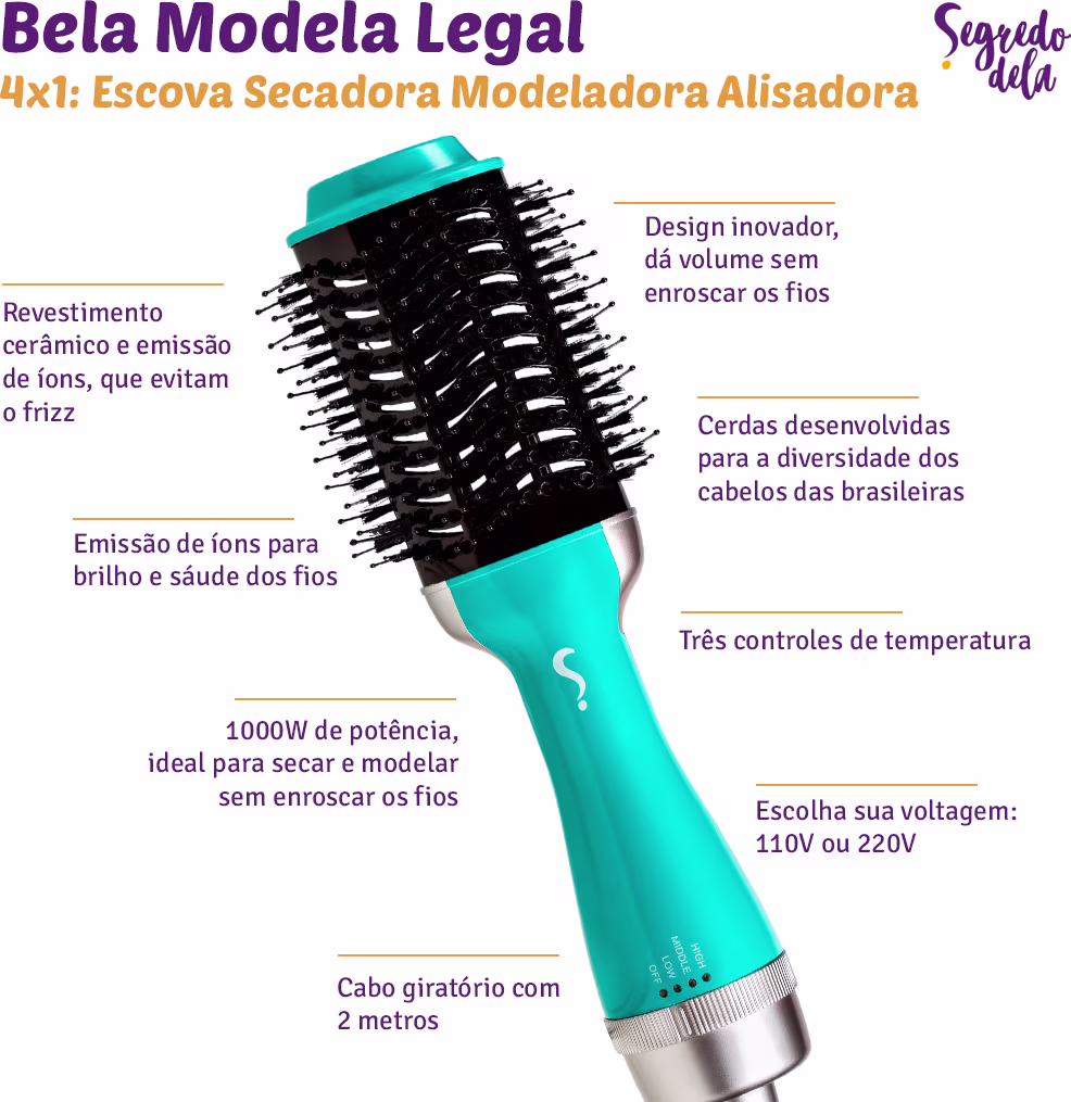 Compre Segredo Dela Bela Modela Legal - Escova Secadora Modeladora e Alisadora. Melhor preço e entrega rápida para Segredo Dela. Ver mais ❯