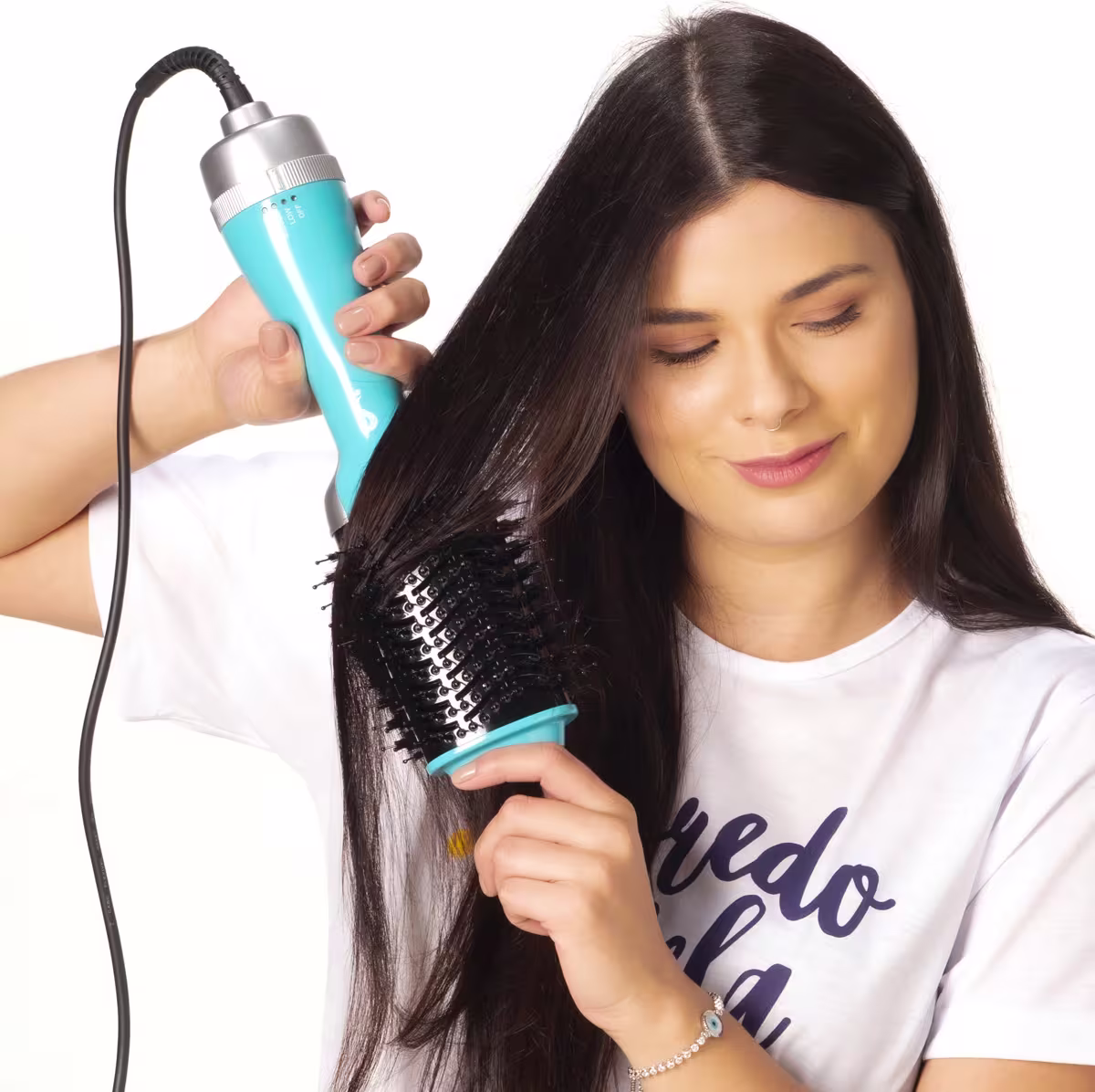 A Escova Secadora Modeladora e Alisadora Segredo Dela Bela Modela Legal possui revestimento cerâmico e uma exclusiva tecnologia que emite íons, reduzindo o frizz e selando as cutículas dos fios. Com cerdas mistas e flexíveis em 360º, contribui para oferecer conforto ao deslizar suavemente pelos fios. Seu design ergonômico permite escovar, secar, modelar e alisar os fios de forma fácil, rápida e super prática, proporcionando uma modelagem perfeita da raiz até as pontas.