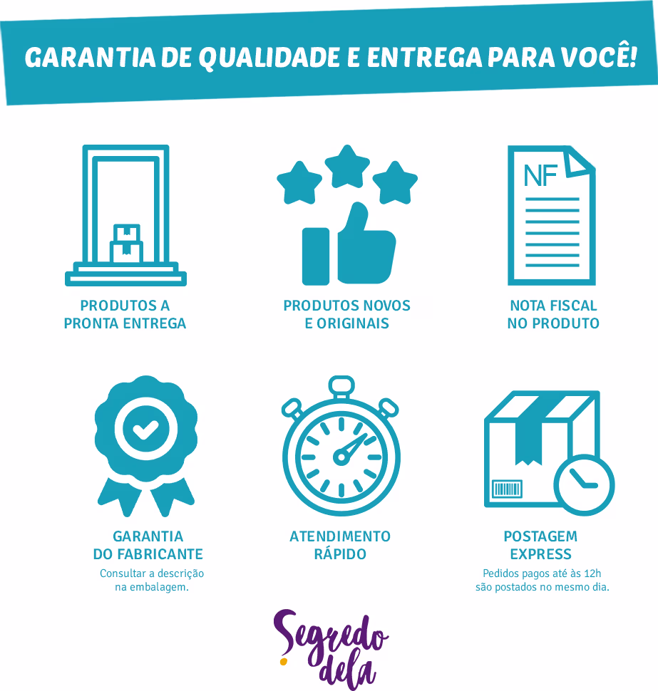 Disponível nas cores: Branco, Dourado, Prata, Preto, Rosa e Verde.