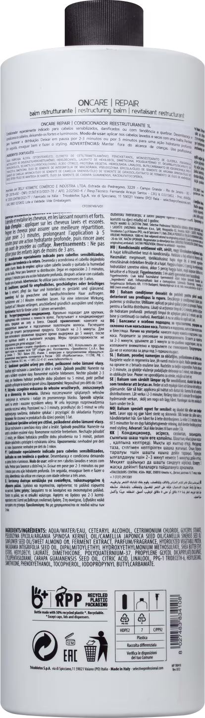 Condicionador para cabelos sensibilizados, danificados e quebradiços. Selective Professional On Care Repair desembaraça e condiciona, deixando os cabelos fortes e luminosos.
