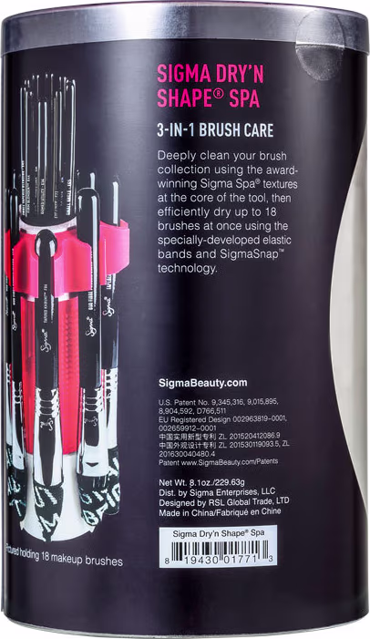 Sigma Beauty Sigma Dry'n Shape Spa possui 4 texturas de limpeza e 18 encaixes de tamanhos variados. Assim, pode ser usado com qualquer tipo de pincel. Além disso, sua estrutura é fácil de desmontrar para permitir um uso mais prático. Com ele, os cuidados com acessórios de maquiagem se tornam mais rápidos, fáceis e seguros.