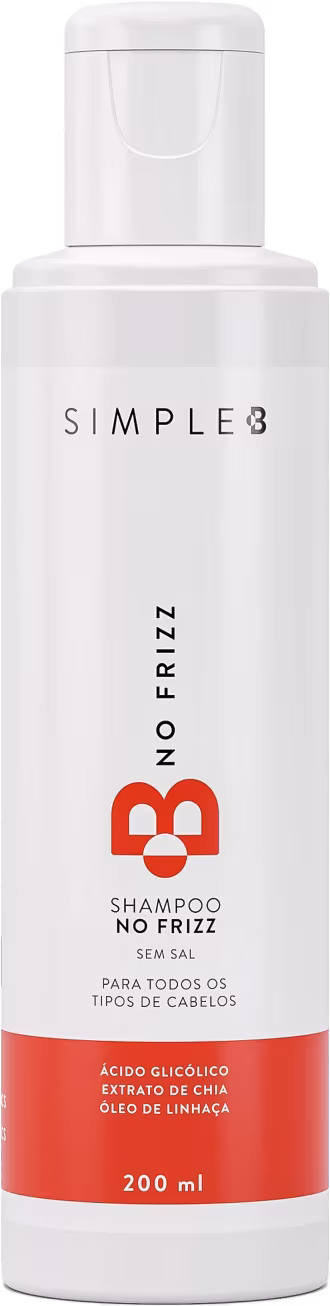 O Shampoo Simple B No Frizz possui ativos que garante madeixas mais protegidas, hidratadas e sem frizz ao longo do dia. Além disso, repõe a oleosidade natural e combatendo a quebra, garantindo muito brilho e maciez ao cabelo.