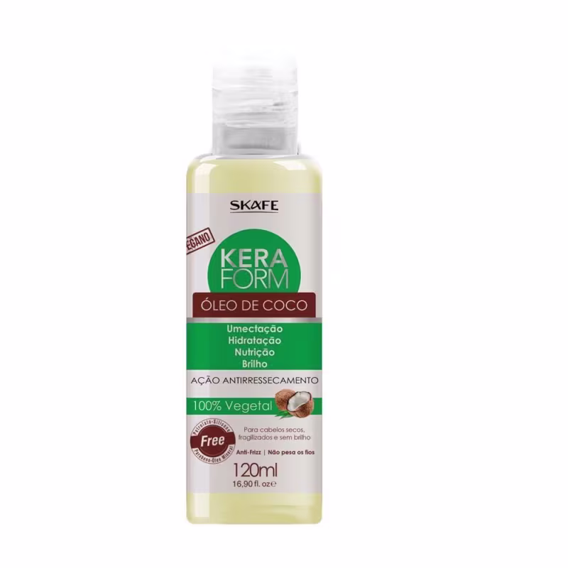 O Óleo Capilar Skafe Keraform Óleo de Coco fortalece cada fio, da raiz às pontas, selando as cutículas e evitando as indesejadas pontas duplas. Com uma fórmula rica em ácidos graxos, é a resposta para a hidratação e nutrição diárias que seu cabelo merece.