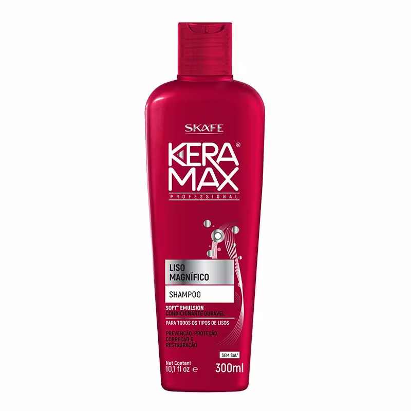 Shampoo para cabelos lisos. Skafe Keramax Liso Magnífico Mega Dose confere naturalidade e cuidado, para fios livres de danos e totalmente sedosos. Sua formulação conta com a tecnologia Soft Emulsion, que oferece higienização e condicionamento para os fios, deixando-os livres das agressões causadas diariamente.