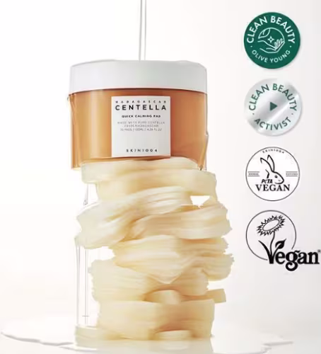 Skin1004 Centella Madagascar Quick Calming Pad é uma almofada tônica rica em essência com Centella e Pantenol que acalma e hidrata a pele em apenas 2 minutos. Oferece um uso muito mais prático do que uma máscara facial.