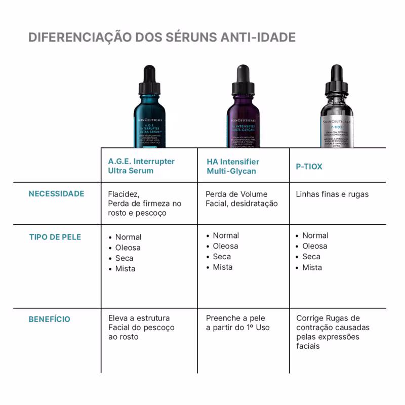 O Sérum Facial Antissinais SkinCeuticals A.G.E. Interrupter Ultra é o primeiro sérum anti-idade com efeito face sculpt, desenvolvido para elevar visivelmente a estrutura facial do pescoço ao rosto. Com tecnologia avançada que reconstrói quatro tipos de colágeno em quatro camadas da pele, ele redefine o contorno, promove efeito lifting imediato e recupera o tônus e a firmeza, complementando os resultados de procedimentos estéticos voltados ao biostímulo de colágeno.