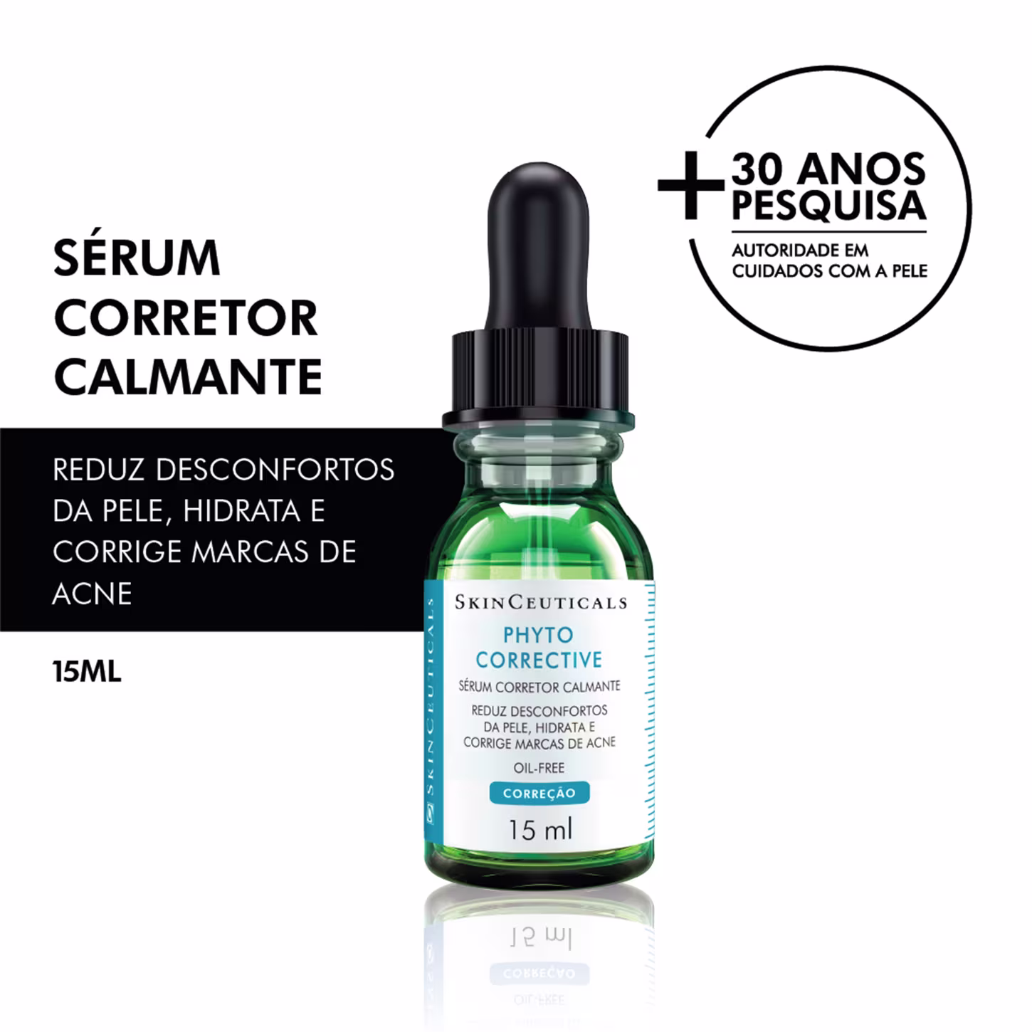 Sérum corretor calmante para peles acneicas. Phyto Corrective SkinCeuticals acalma, hidrata, reduz desconfortos e corrige as marcas provocadas pela acne.