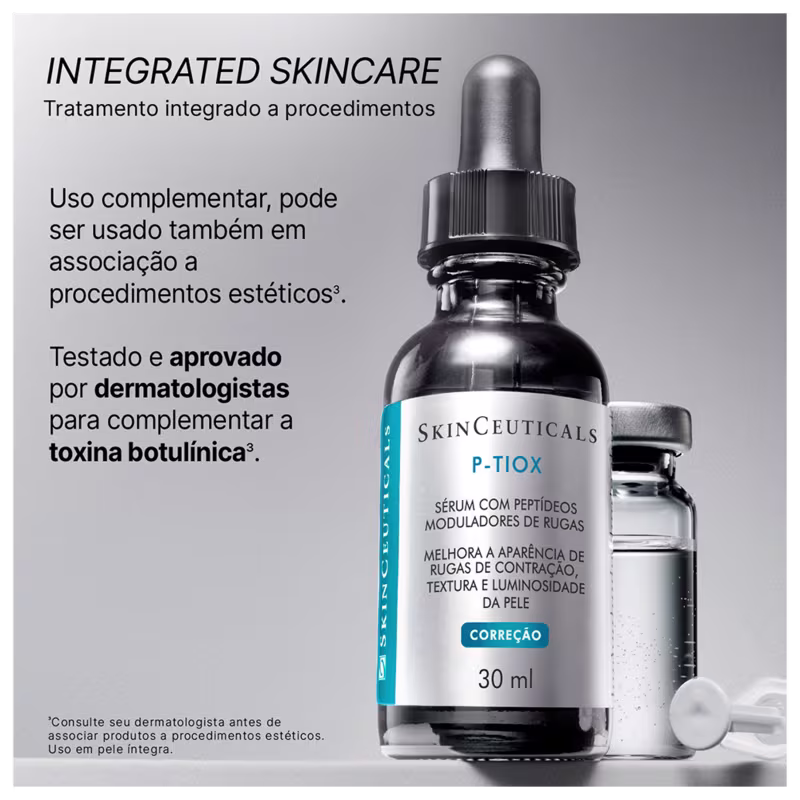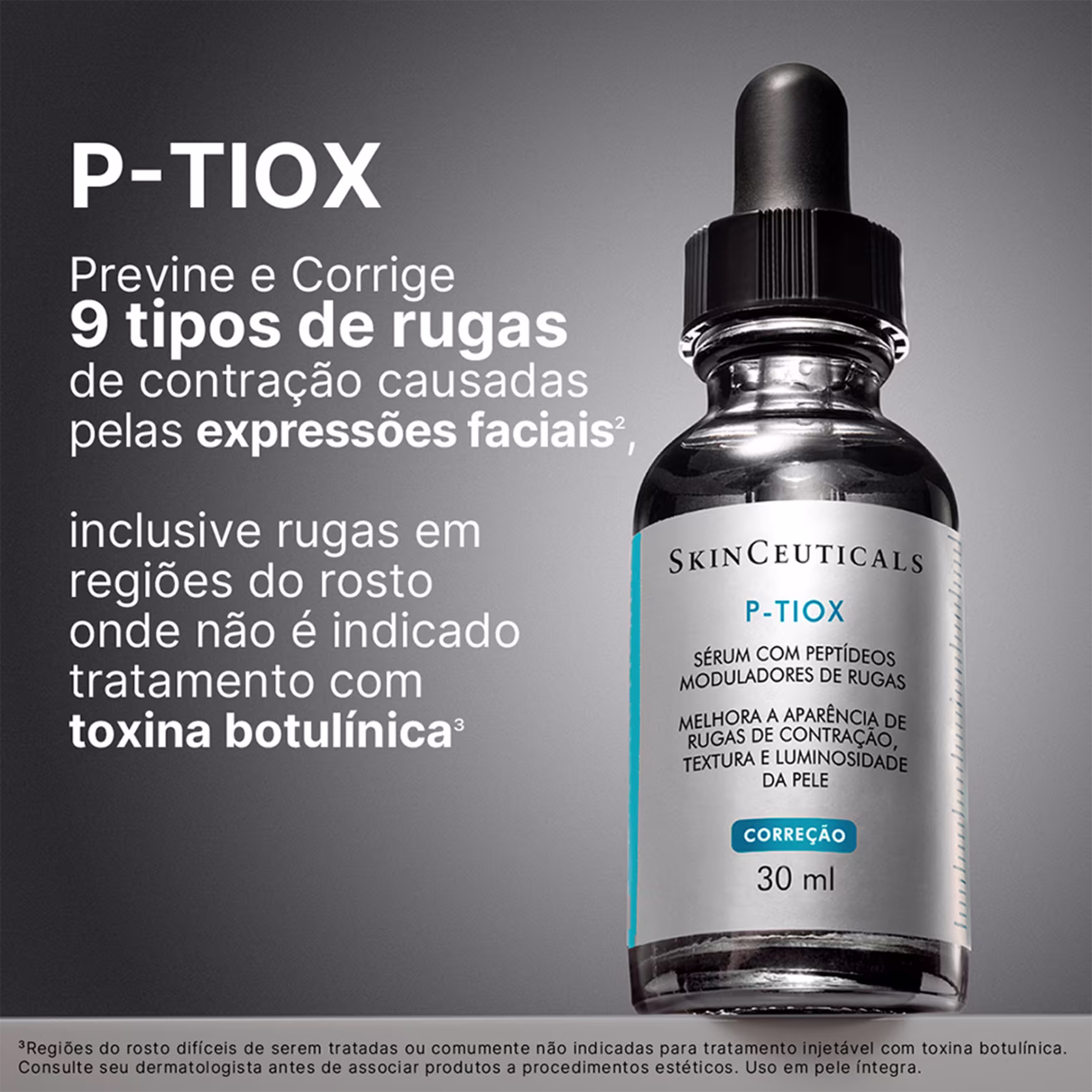 Sérum facial antirrugas. SkinCeuticals P-TIOX proporciona um poderoso efeito rejuvenescedor que previne e corrige 9 tipos de rugas de contração, decorrente das expressões faciais.
