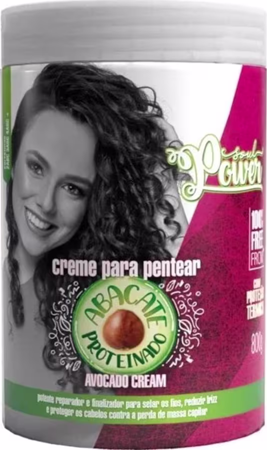 Creme de pentear para cabelos de todas as curvaturas. Soul Power Abacate Proteinado deixa os cachos desembaraçados e maleáveis.