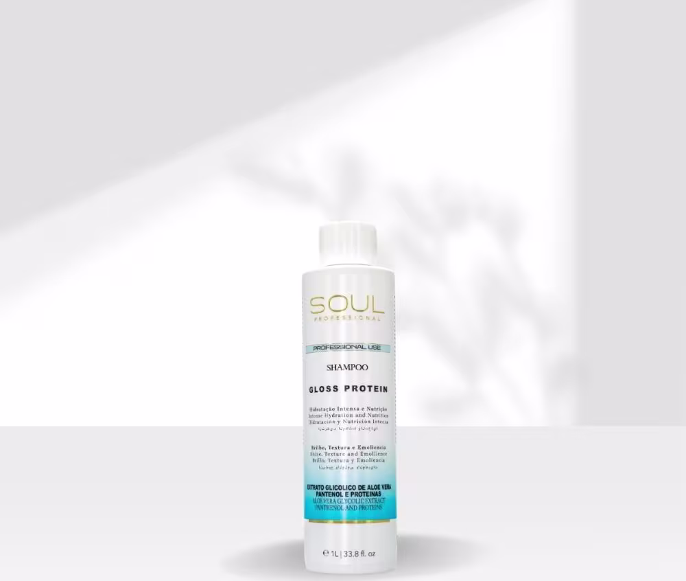 Shampoo para cabelos danificados e ressecados. Soul Professional Gloss Protein fortalece e realça o brilho natural dos fios.