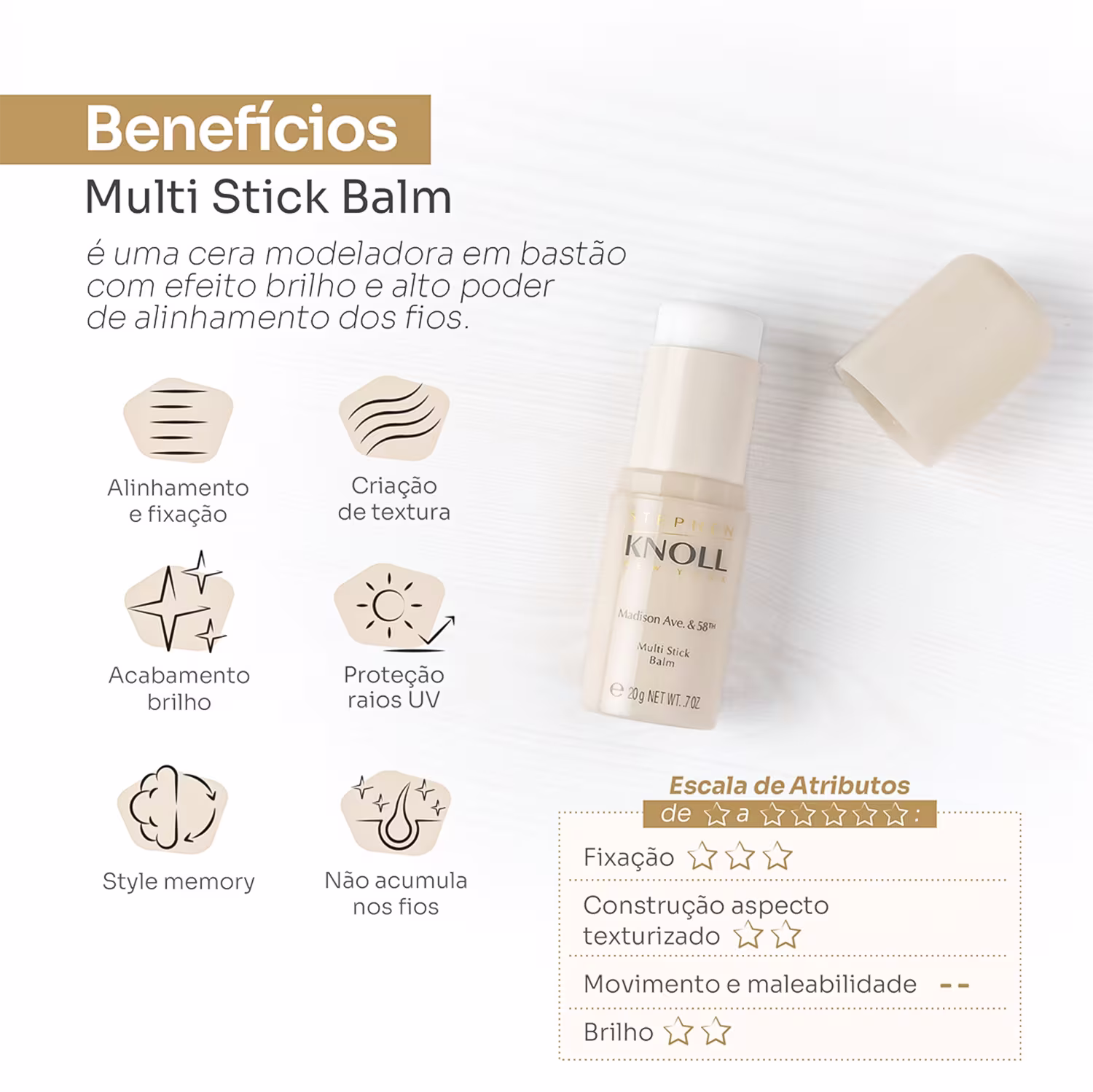 Cera Modeladora em Bastão Stephen Knoll Madison Ave. & 58th Multi Stick Balm, para todos os tipos de cabelos. Melhores Produtos Capilares Stephen Knoll na BLZ. Ver mais ❯