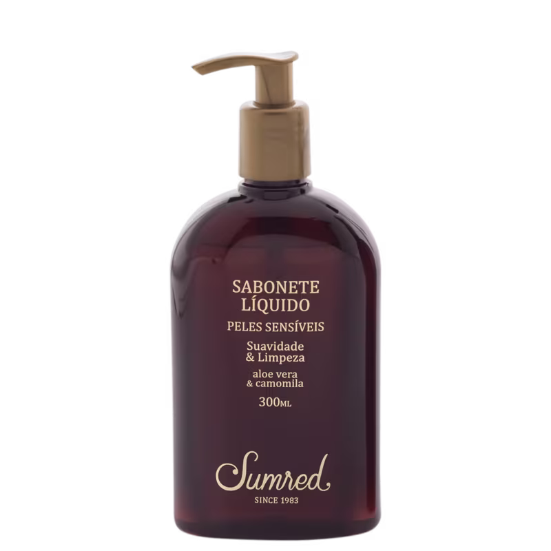 O Sabonete Líquido Sumred Aloe Vera & Camomila é ideal para peles sensíveis, pois sua fórmula reúne ativos que reduzem a irritação causada pelo ressecamento.