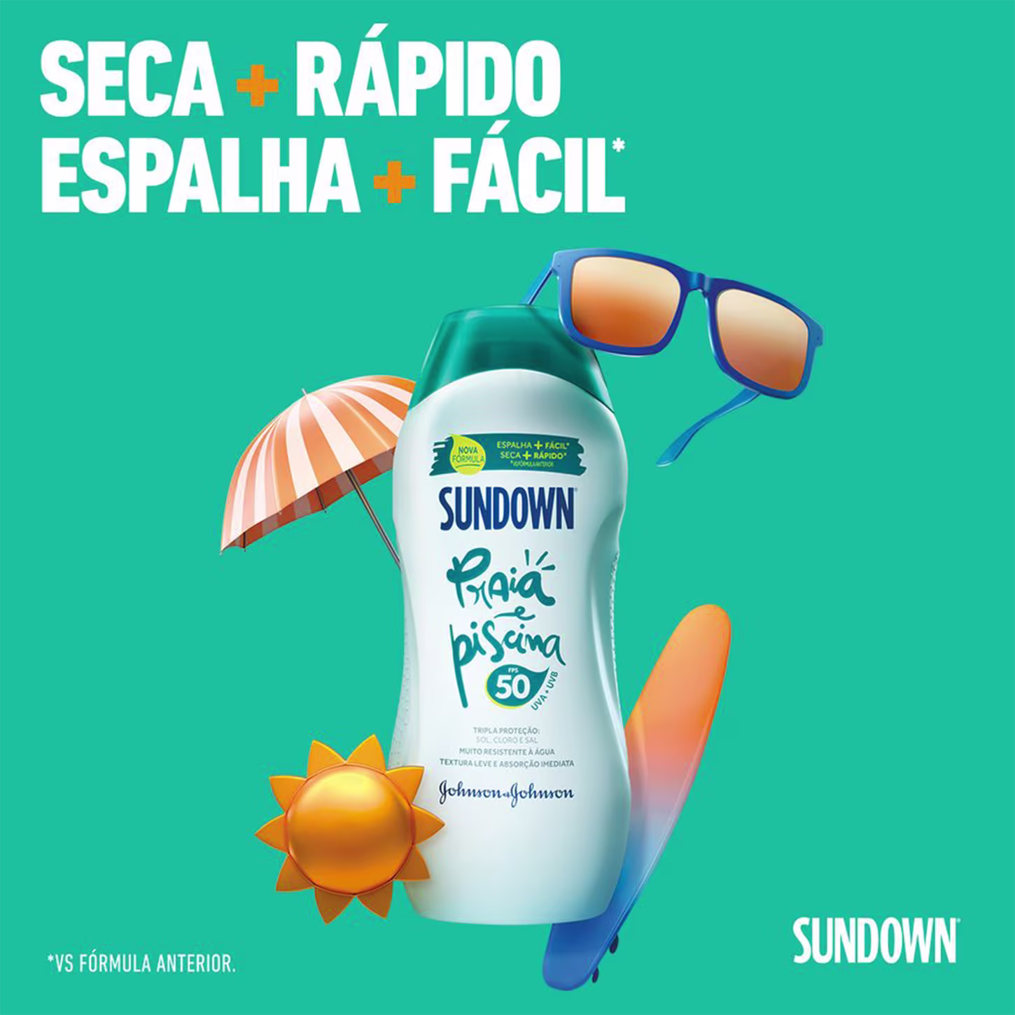 Protetor solar para todos os tipos de pele. Com textura leve, Sundown Praia e Piscina FPS 50 Protetor Solar oferece proteção imediata sem deixar oleoso. Combate os raios UVA e UVB de maneira extremamente eficaz, além de ajudar a proteger a pele de elementos agressores, como cloro e água salgada.
