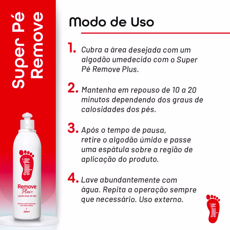 Loção para os pés. Super Pé Remove Plus promove um tratamento completo para os pés, garantindo resultados eficazes e duradouros.