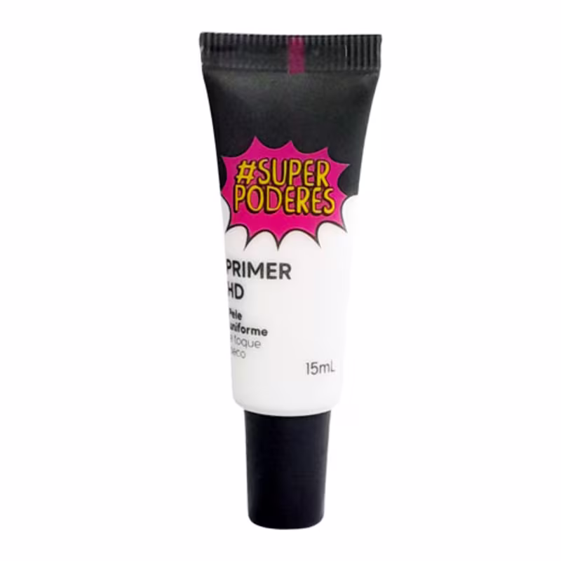 Primer facial. Super Poderes HD prepara a pele para receber a maquiagem, garantindo mais durabilidade e uniformidade.