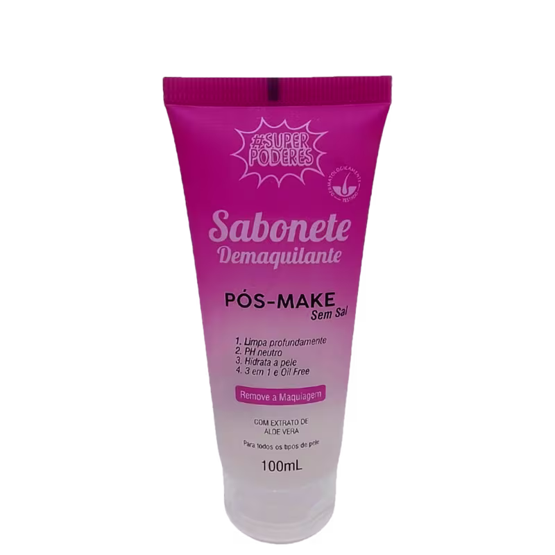 O Sabonete Demaquilante Super Poderes Pós Make é um produto versátil que proporciona uma limpeza eficaz, removendo impurezas diárias e maquiagem, sem comprometer a hidratação natural da pele. Sua fórmula oil-free e sem sal purifica a pele, deixando-a com uma sensação leve e cuidada. Com extrato de Aloe Vera, oferece benefícios adicionais de hidratação e cuidado.