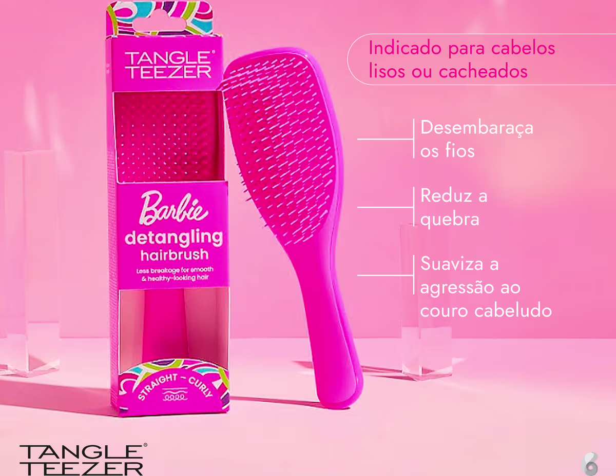 Escova para cabelos lisos ou cacheados. Tangle Teezer Wet Detangler Barbie desembaraça os fios molhados e úmidos sem quebrar.