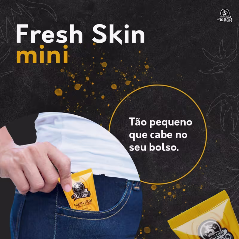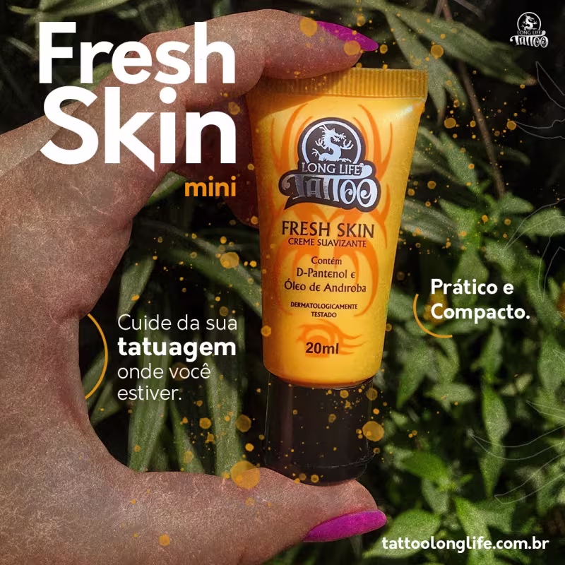 Creme suavizante para a cicatrização da tatuagem. Tattoo Long Life Fresh Skin age profundamente na regeneração da pele, sem formação de cascas, preservando a arte sem danificar as cores e os traços do desenho.