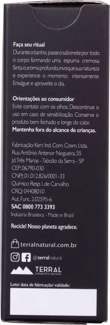 Sabonete em barra para peles oleosas. Com micropartículas esfoliantes, Terral Carvão Bamboo higieniza, controla a oleosidade e estimula a renovação celular.