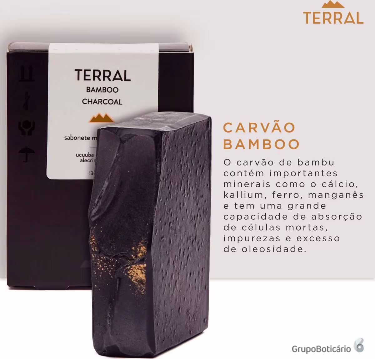 Sabonete em Barra Terral Carvão Bamboo, higieniza profundamente e controla a oleosidade. Melhores Sabonetes Terral na BLZ Ver mais ❯