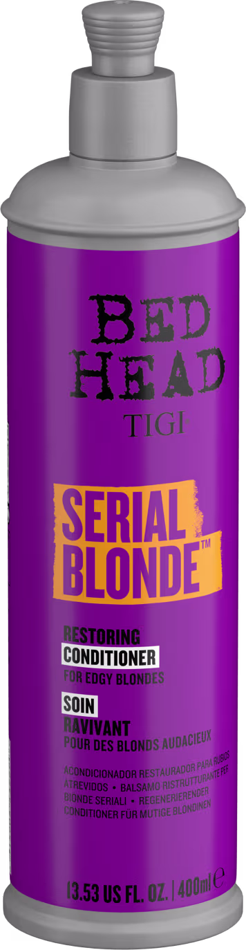 O Condicionador TIGI Bed Head Serial Blonde apresenta Sistema de Proteção da Cor desenvolvido para cuidar e reavivar os cabelos quimicamente tratados e aumentar a vitalidade da cor. Ajuda a reparar os danos, fortalecer os fios e proteger do frizz. Também hidrata, suaviza e condiciona o cabelo.