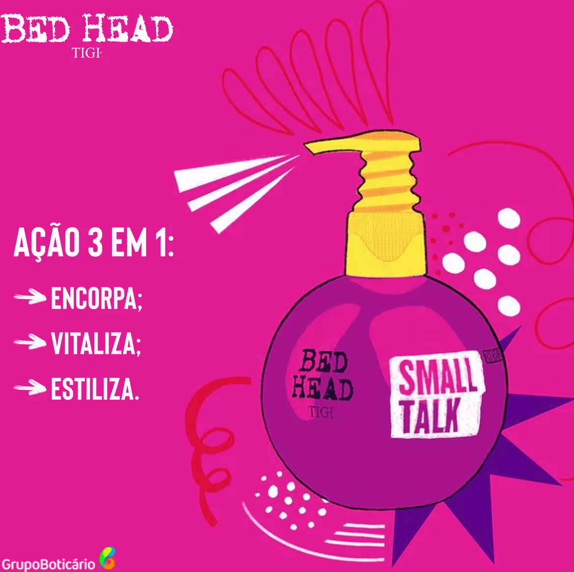 Além disso, Small Talk TIGI Bed Head proporciona brilho, maciez, controla o frizz e define os fios, para um resultado impecável e duradouro. Leve o seu e prepare-se para arrasar com um cabelo de dar inveja!