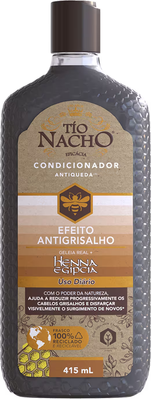 O Condicionador Antiqueda Tío Nacho Efeito Antigrisalho é enriquecido com extratos naturais, como geleia real e jaborandi, revitaliza o couro cabeludo e fortalece os fios, promovendo um crescimento saudável. Sua fórmula especial ajuda a devolver a cor natural aos cabelos, deixando-os com um aspecto mais jovem e saudável.