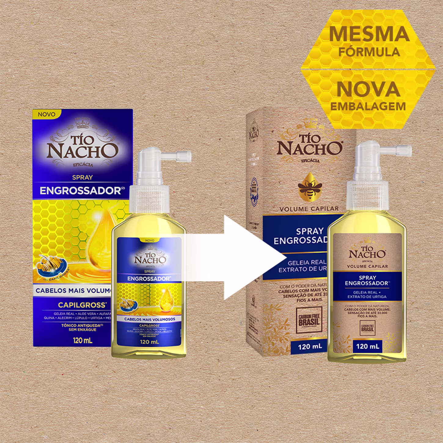 Tônico Antiqueda Tío Nacho Spray Engrossador apresenta fórmula com combinação de Geleia Real com Capilgross e extratos de origem natural, que aumentam a espessura do cabelo e evitam a queda. Seus fios ficam saudáveis, volumosos e bonitos.