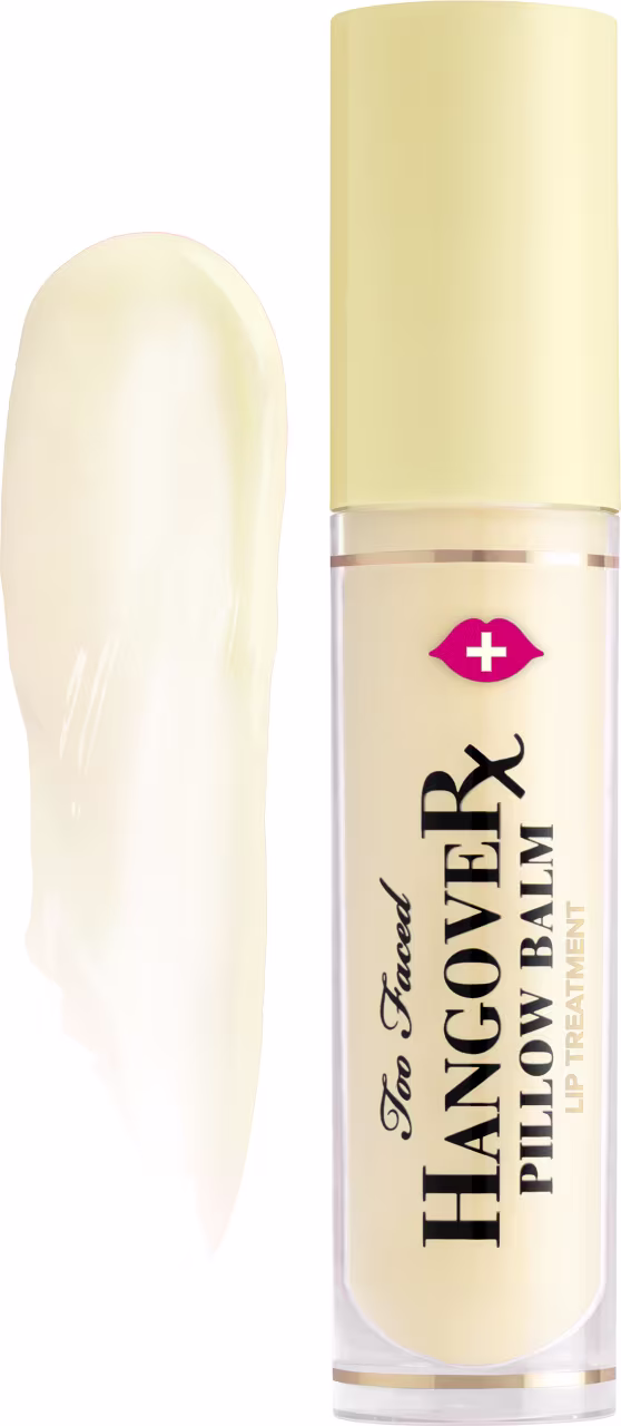 Too Faced Hangover Pillow Balm é um tratamento com infusão de minerais e um complexo nutritivo de Óleos de Frutas, Água de Coco, Manteigas Condicionadoras e Ácido Hialurônico, para preenchimento dos lábios com hidratação e suavidade. Além disso, sua textura rica e luxuosamente cremosa que cria uma barreira na pele e evita que os lábios ressequem.