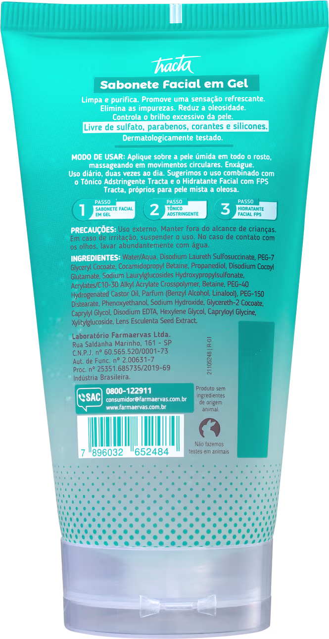 O Sabonete Facial em Gel Pele Mista a Oleosa, da Tracta, possui ação purificante e mantém os poros desobstruídos, sem agredir ou ressecar a pele. Promove sensação de frescor e deixa