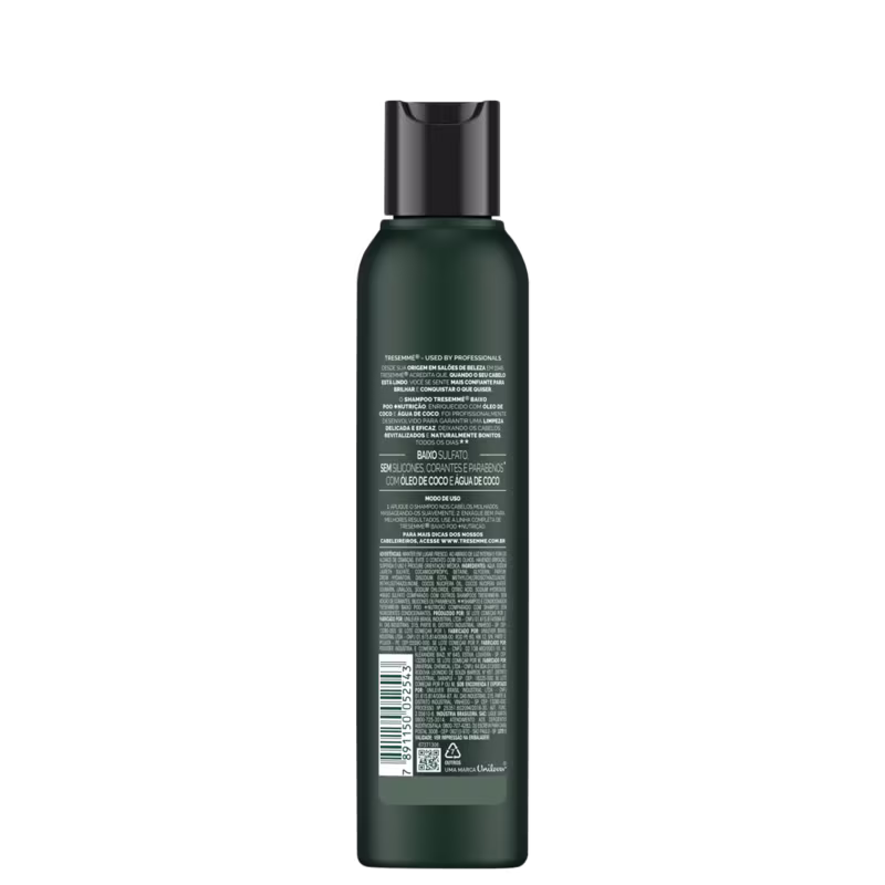 A fórmula de TRESemmé Baixo Poo + Nutrição Shampoo possui baixa concentração de sulfato, além de não conter parabenos, silicones ou corantes, para proporcionar uma limpeza delicada que não remove nutrientes importantes para o fio. Também revitaliza e traz mais saúde com derivados do Coco.