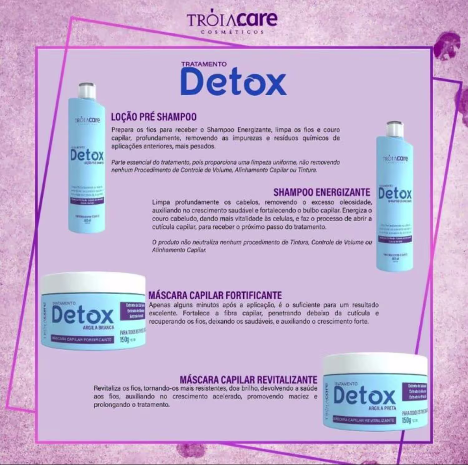 A Máscara Capilar Tróia Hair Cosmetics Detox Argila Preta é formulada com Argila Preta, conhecida por contar com propriedades higienizantes e revitalizantes. Trata-se de um produto completo, capaz de fortalecer os fios, prevenir a quebra e oferecer uma sensação de frescor imediata.