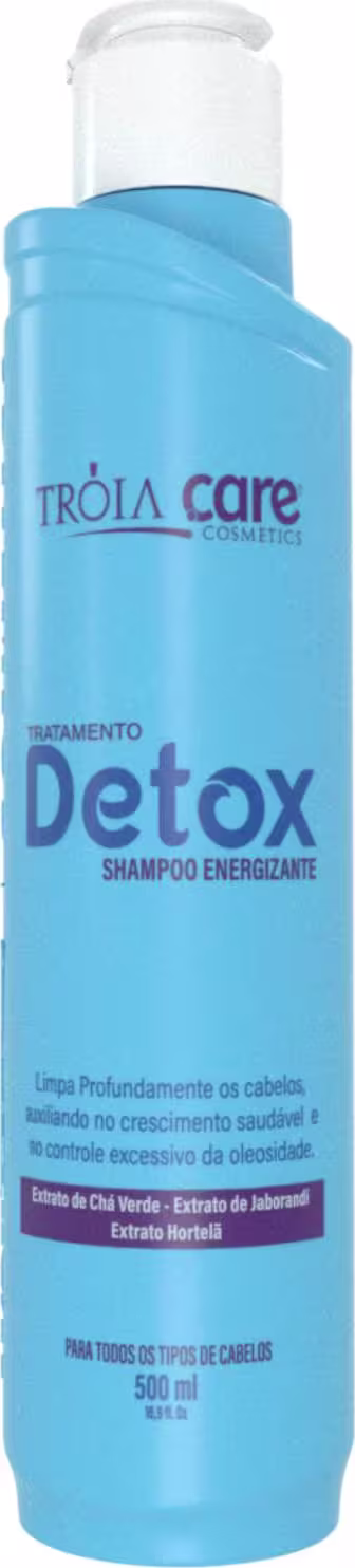 O Shampoo Energizante Tróia Hair Cosmetics Detox conta com uma fórmula exclusiva, enriquecida com uma combinação de ingredientes naturais de alta qualidade, incluindo o Extrato de Chá Verde, de Jaborandi e de Hortelã.