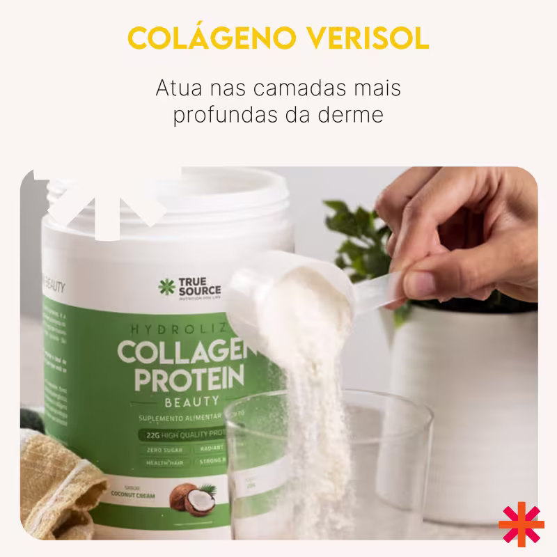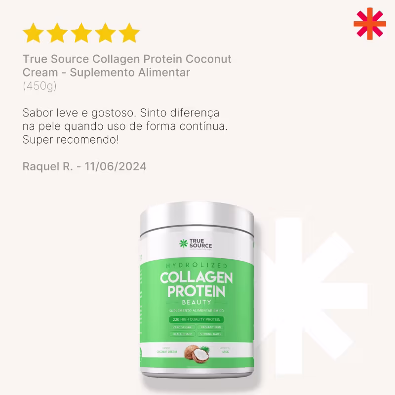 O Suplemento Alimentar True Source Collagen Protein Coconut Cream oferece uma combinação única de colágeno hidrolisado e peptídeos bioativos de colágeno Verisol®, tecnologia alemã com eficácia cientificamente comprovada na saúde da pele. Sua fórmula promove a elasticidade, a firmeza e a hidratação da pele, reduzindo rugas e linhas de expressão. Além disso, o colágeno hidrolisado contribui para a saúde das articulações, ossos, unhas e cabelos. Com sabor agradável de coco, é fácil de consumir e se integra perfeitamente à sua rotina diária, proporcionando resultados visíveis para uma pele mais jovem, bonita e saudável.