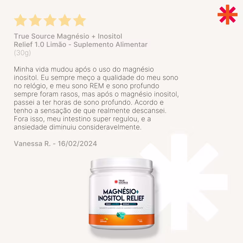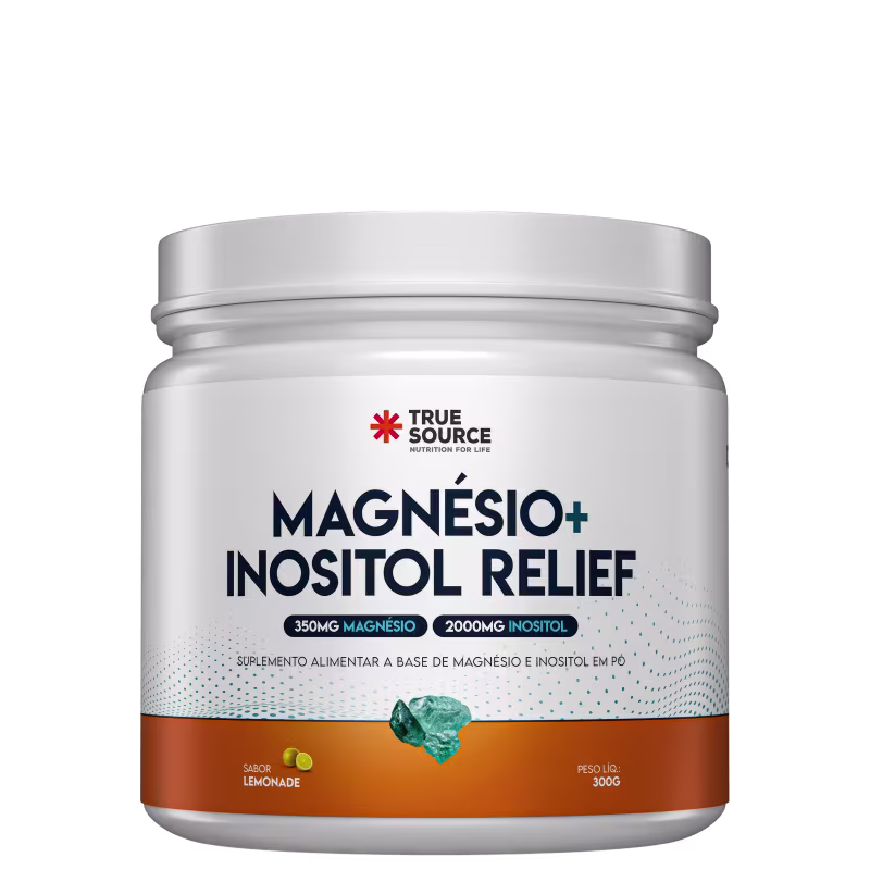 O Suplemento Alimentar True Source Magnésio + Inositol Relief 1.0 Limão traz a combinação de magnésio com inositol que oferece benefícios como suporte para ossos, dentes, função muscular, metabolismo energético, equilíbrio de eletrólitos e divisão celular. O magnésio é fundamental em mais de 300 reações metabólicas no corpo humano, essencial para a saúde óssea, muscular, cardiovascular, intestinal e do sistema nervoso central. Deficiências desse mineral podem causar diversos problemas de saúde. Por outro lado, o inositol, pertencente à família das vitaminas do complexo B, está presente na membrana celular, especialmente no sistema nervoso central, melhorando a comunicação entre os neurônios. Com sabor de limão, une as propriedades desses nutrientes essenciais em uma fórmula refrescante e funcional.