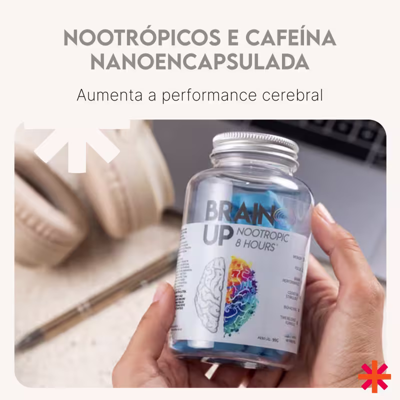 O Suplemento Alimentar True Source Nootrópico Brain Up combate a fadiga mental e otimiza as funções cerebrais através de uma poderosa combinação de ativos naturais, incluindo a cafeína nanoencapsulada com liberação gradual de 8 horas. Essa tecnologia inovadora garante um efeito estimulante prolongado, combatendo a névoa cerebral e proporcionando clareza mental, foco e concentração ao longo do dia. Sua fórmula avançada também atua na prevenção de doenças neurodegenerativas, melhorando a oxigenação cerebral e estimulando a neurogênese, o que contribui para a saúde do cérebro a longo prazo.