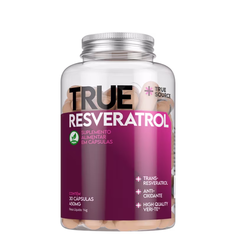 O Suplemento Alimentar True Source Resveratrol 450mg oferece resveratrol na sua forma ativa trans resveratrol, combinado com licopeno, óleo de semente de uva e vitamina E, este produto é uma poderosa mistura antioxidante. Utilizando os melhores ativos, o trans resveratrol é certificado pela Veri-te®, garantindo alta tecnologia e eficácia. O resveratrol, encontrado na casca de alguns alimentos e produzido por fermentação de levedura, tem funções antioxidantes, anti-inflamatórias, antibacterianas, vasodilatadoras e cognitivas, com milhares de estudos científicos comprovando seus benefícios para longevidade, saúde óssea, memória, função cognitiva e saúde cardiovascular.