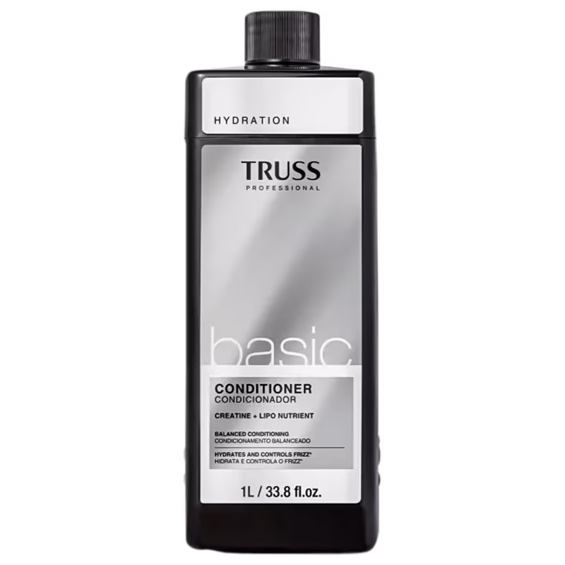Condicionador para todos os tipos de cabelo. TRUSS Basic hidrata, nutre, repõe o brilho, além de prevenir o ressecamento.