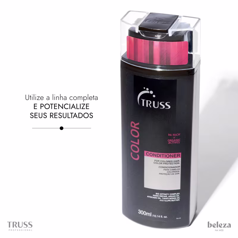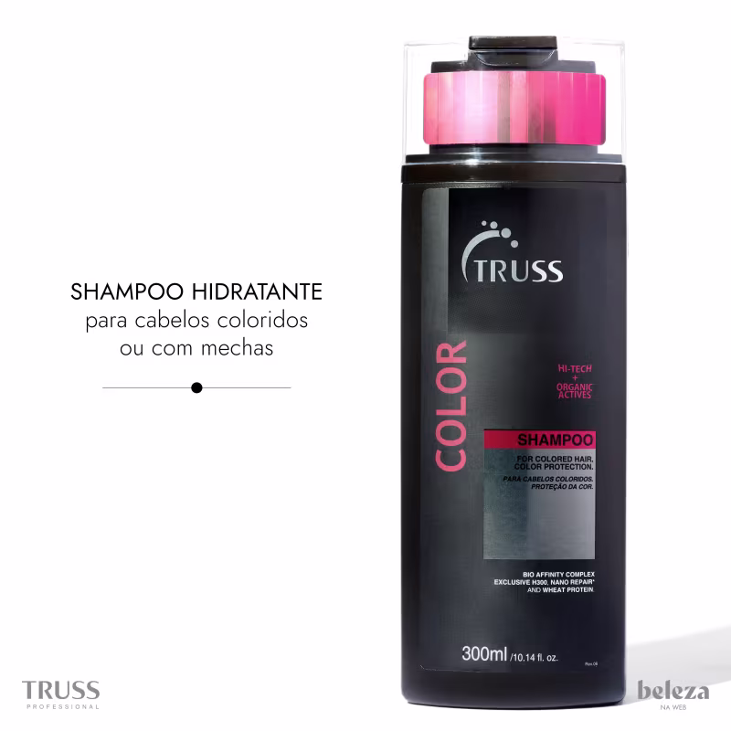Shampoo para cabelos coloridos ou com mechas. Truss Color previne o desbotamento e alteração da cor com brilho intenso.