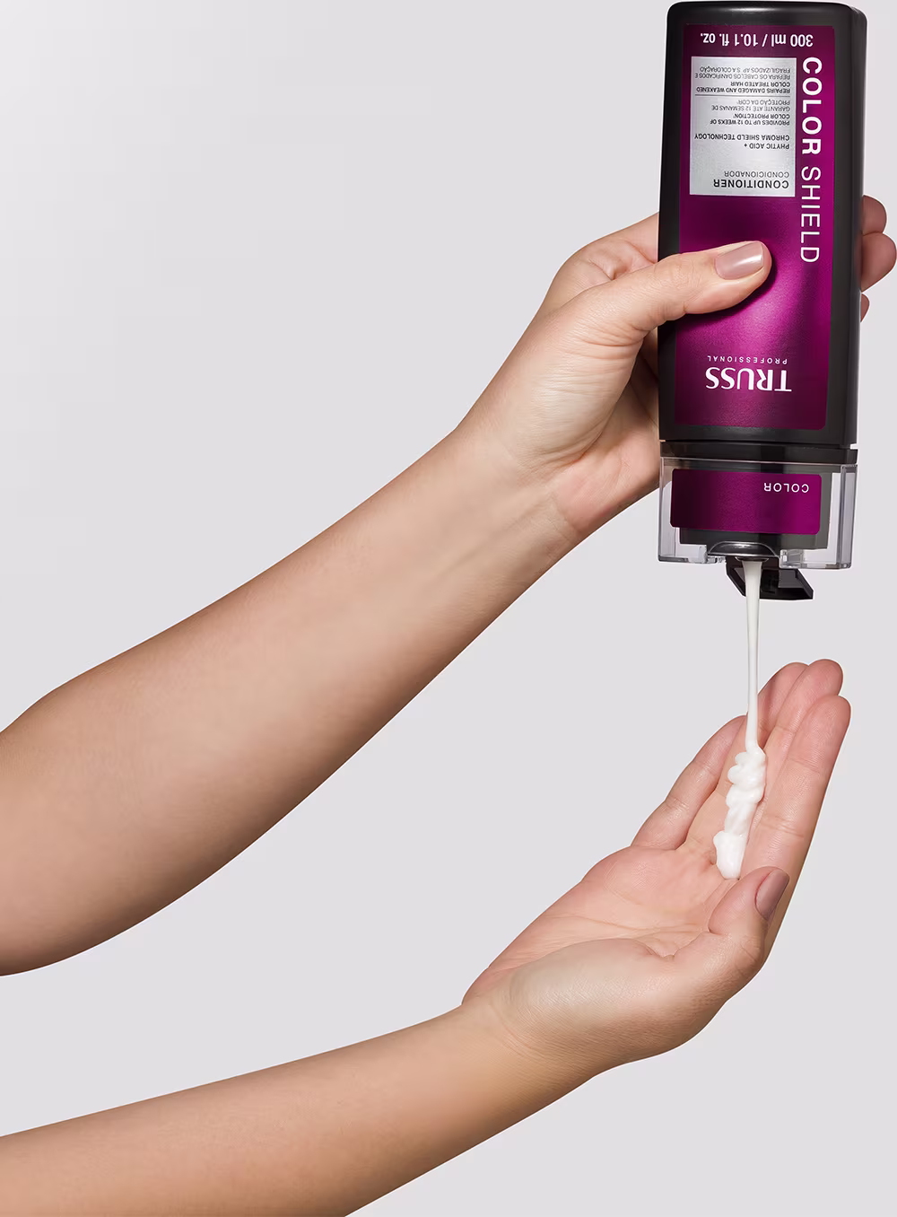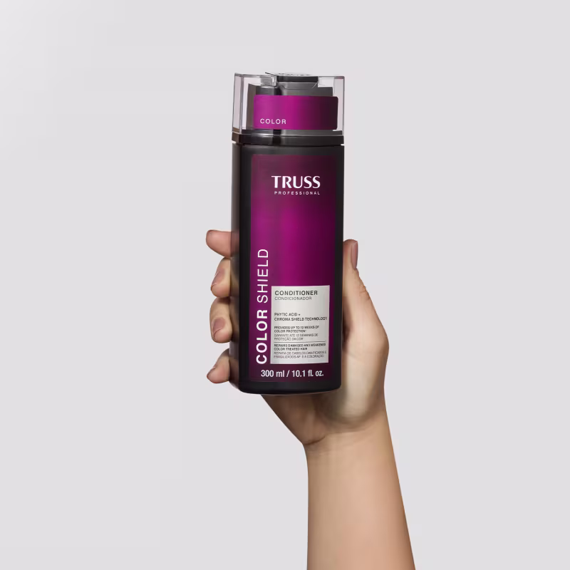 Não sei o CEPCondicionador para cabelos coloridos. TRUSS Color Shield protege a cor por até 12 semanas, repara danos e proporciona brilho intenso.
