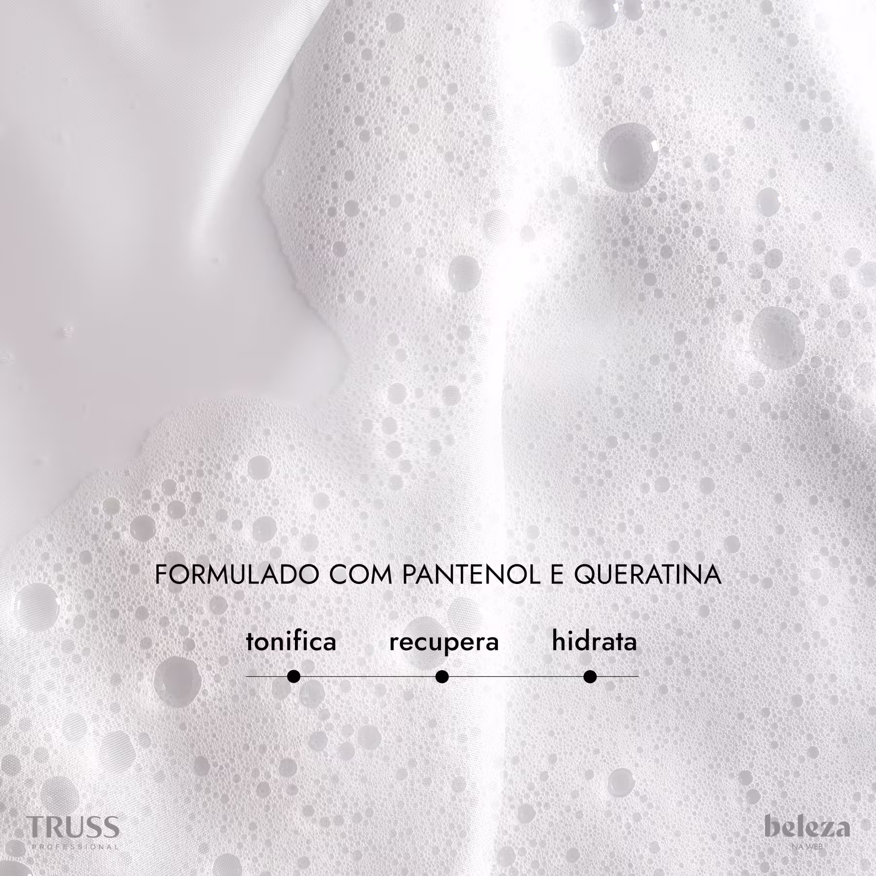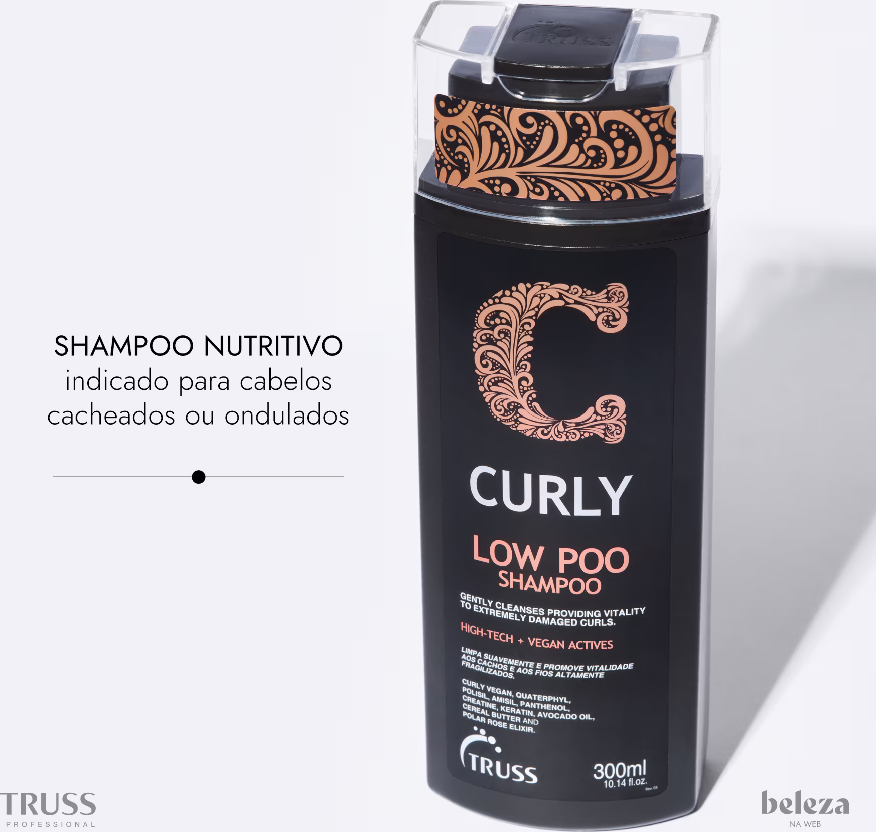 Shampoo para cabelos cacheados e ondulados. Truss Curly Low Poo faz uma limpeza suave enquanto nutre e revitaliza os fios. Também é ótimo para quem está com os cabelos extremamente danificados ou com química, já que sua fórmula não compromete a hidratação natural da fibra capilar.