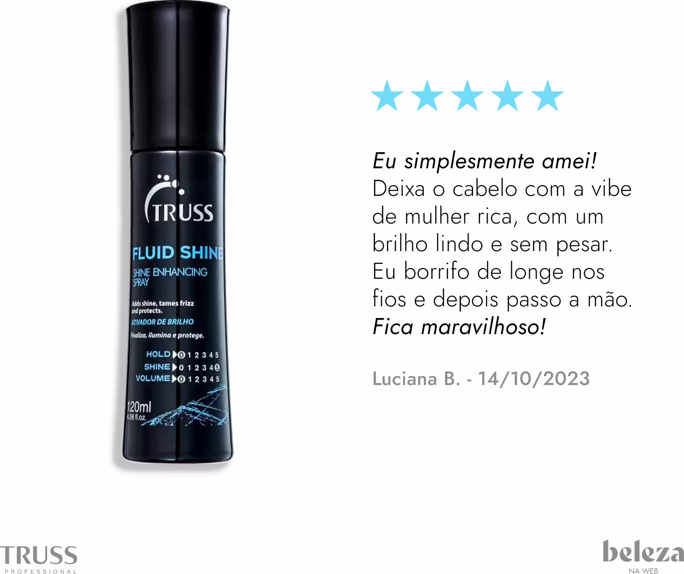 Compre Spray de Brilho Truss Fluid Shine, ativa a luminosidade dos fios. Melhor preço e entrega rápida. Garanta Spray de Brilho Truss Fluid Shine. Ver mais ❯
