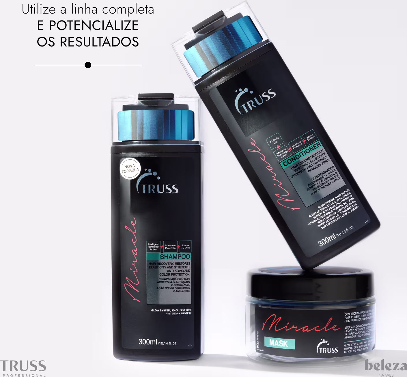 - ▸ O TRUSS Miracle entrega um cuidado que revela o esplendor radiante dos fios.