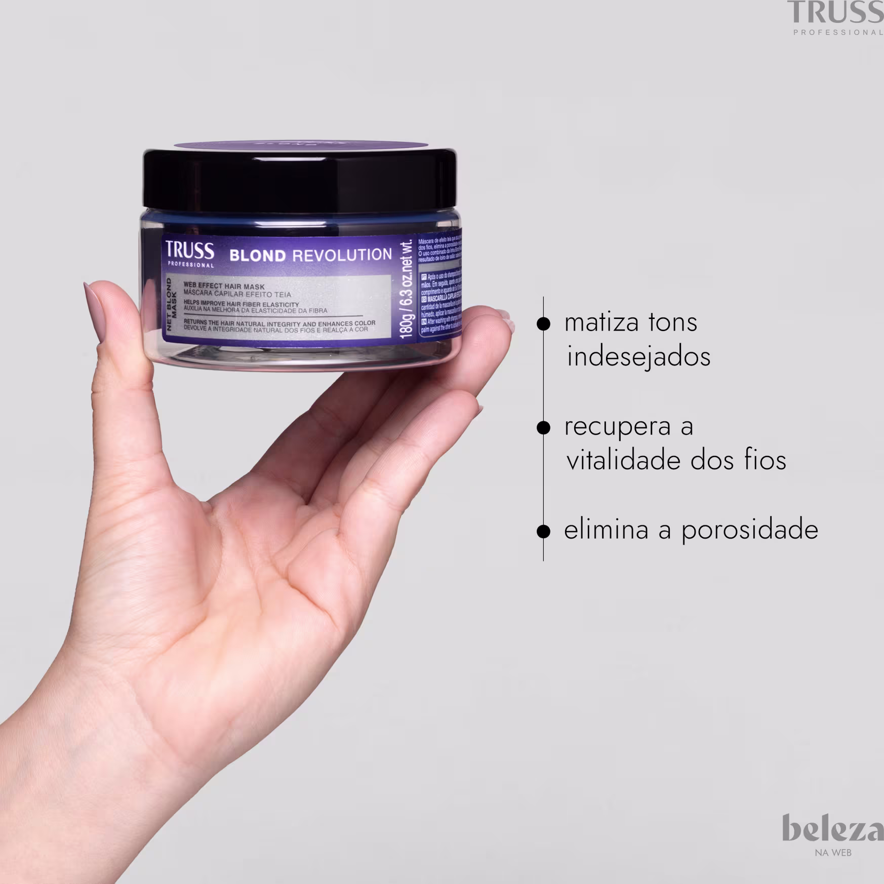 Máscara capilar para cabelos loiros ou descoloridos. TRUSS Net Blond Revolution proporciona fios muito mais saudáveis e vibrantes.