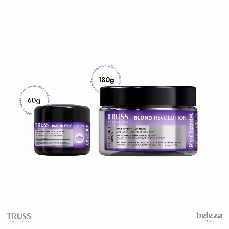 A Máscara Capilar TRUSS Net Blond Revolution reduz em 90% a quebra e repara as ligações complexas danificadas pela descoloração. Com a recuperação das pontes moleculares e a reposição da proteína perdida, seu ativo biotecnológico age diretamente no córtex, aumentando a elasticidade e combatendo a porosidade. Quando usada em conjunto com a linha Blond Revolution, ela atua nas diferentes ligações capilares, reparando os fios descoloridos em todas as camadas. Com a inovadora tecnologia Bond Restore, a máscara elimina amarelamento, opacidade e porosidade, proporcionando 10 vezes menos quebra e garantindo fios protegidos e reestruturados.